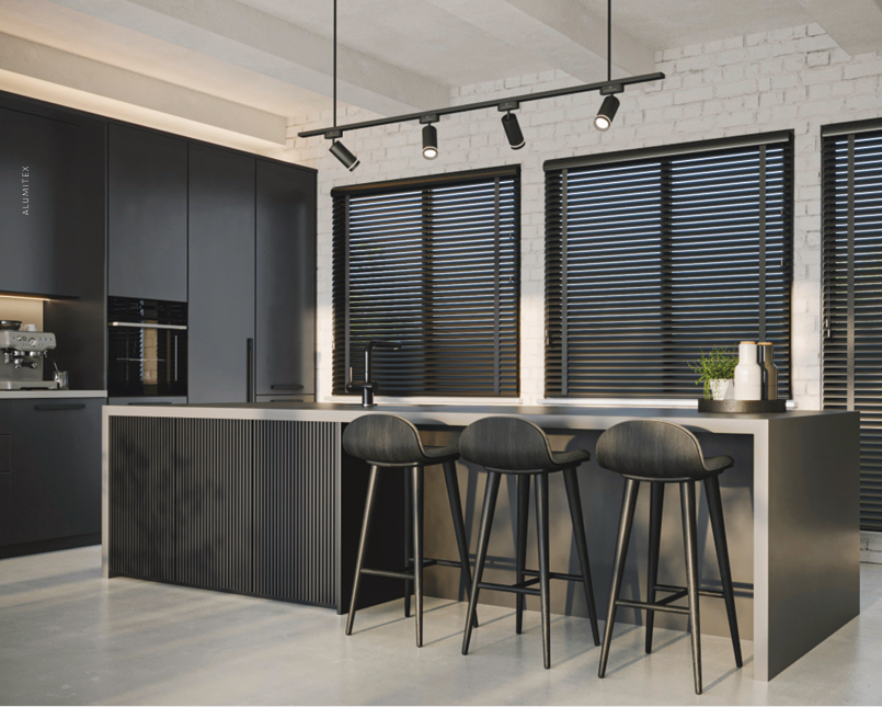 Faux wood blinds are ideal for moisture-prone areas such as kitchens and bathrooms, thanks to their durable vinyl material. Sleek and versatile, Venetian blinds are a stylish and popular choice for any room.